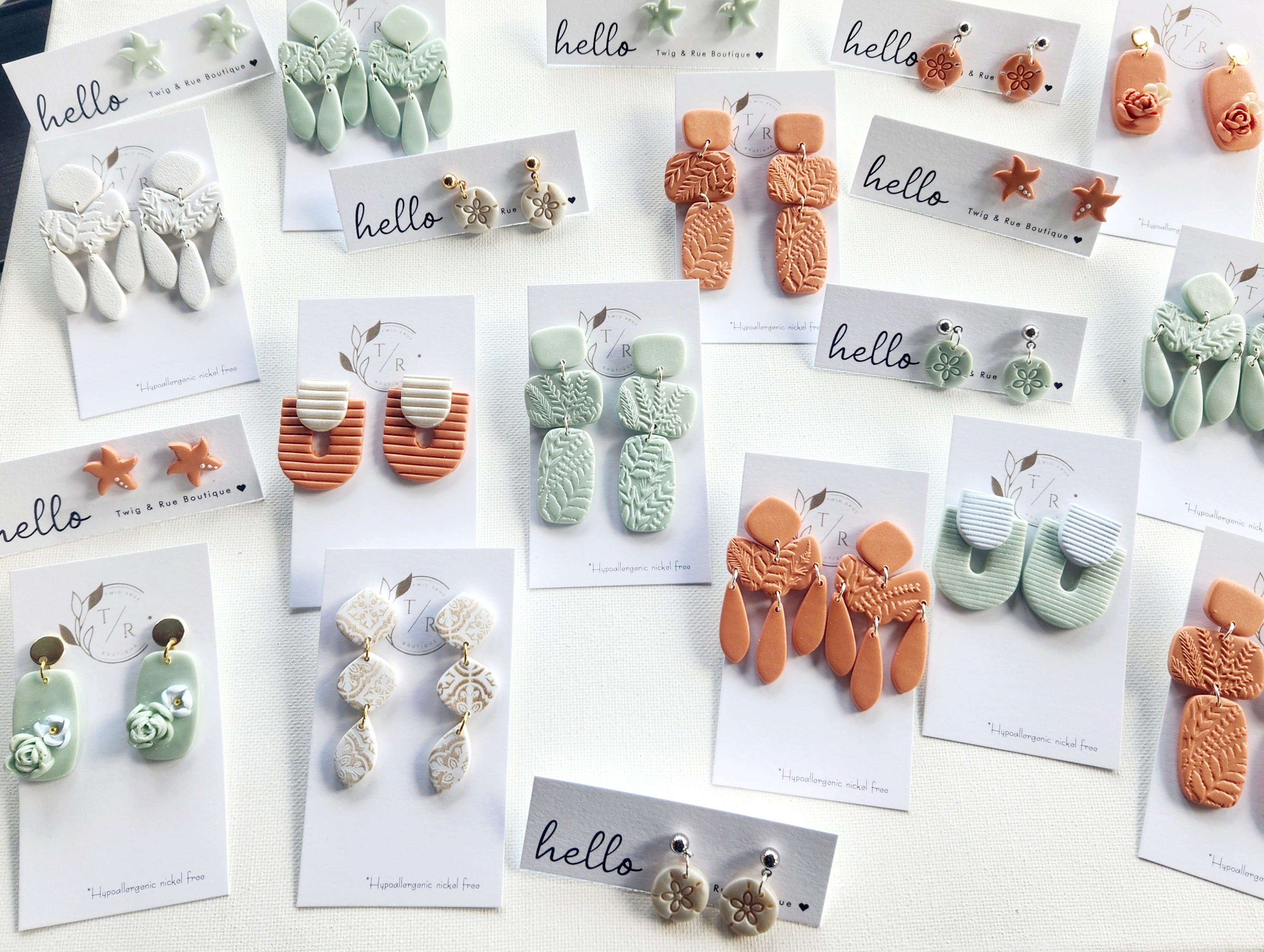A gorgeous dangle earring! Shimmery gold painted onto white clay with an antique design. Triple dangle drop