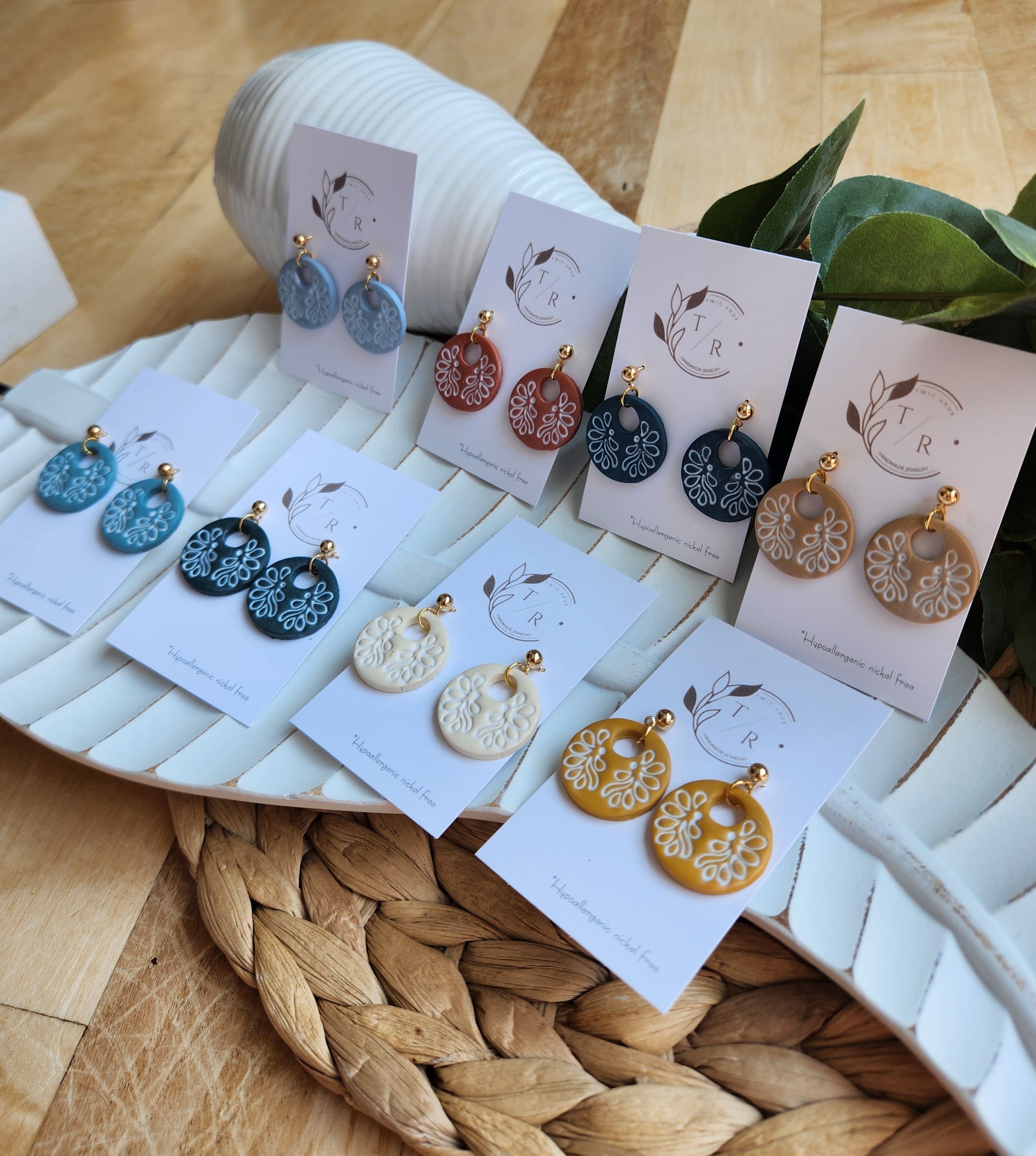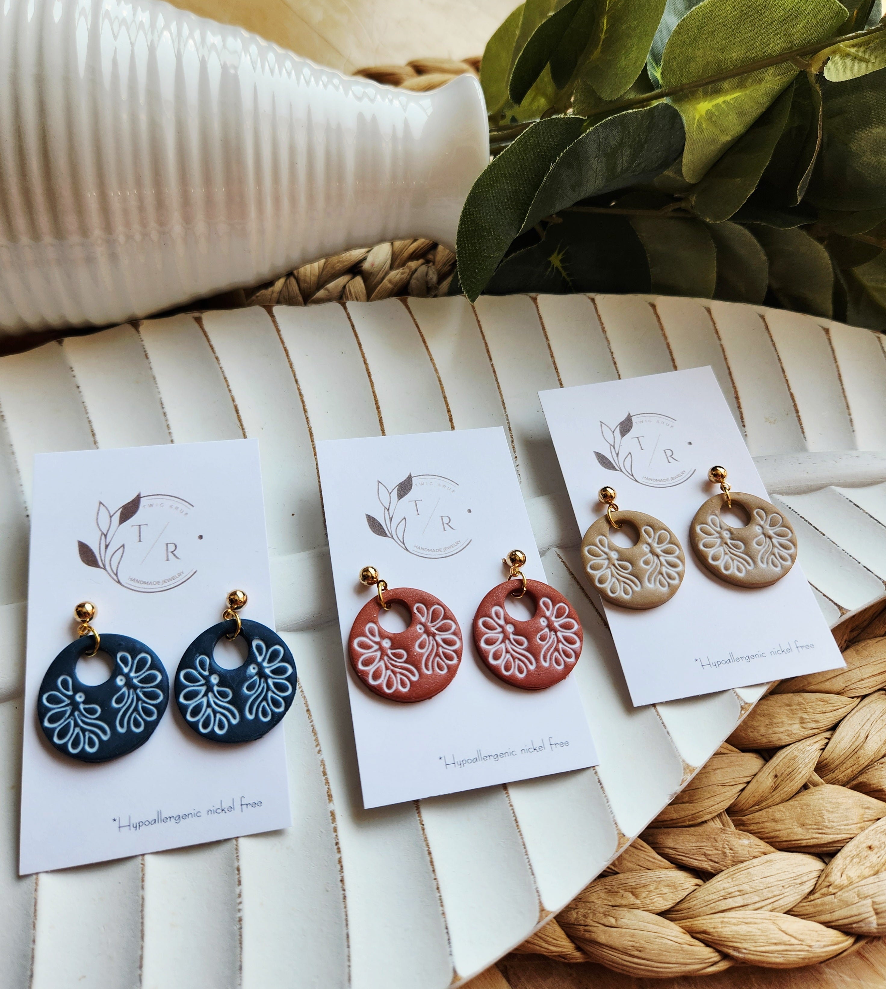 The Elowyn Boho Clay Hoops are expertly crafted from lightweight clay, featuring intricate boho-inspired detailing that adds subtle texture and dimension. Available in multiple color options, these earrings are thoughtfully finished with high-quality gold or silver studs, ensuring durability and comfort for daily wear.