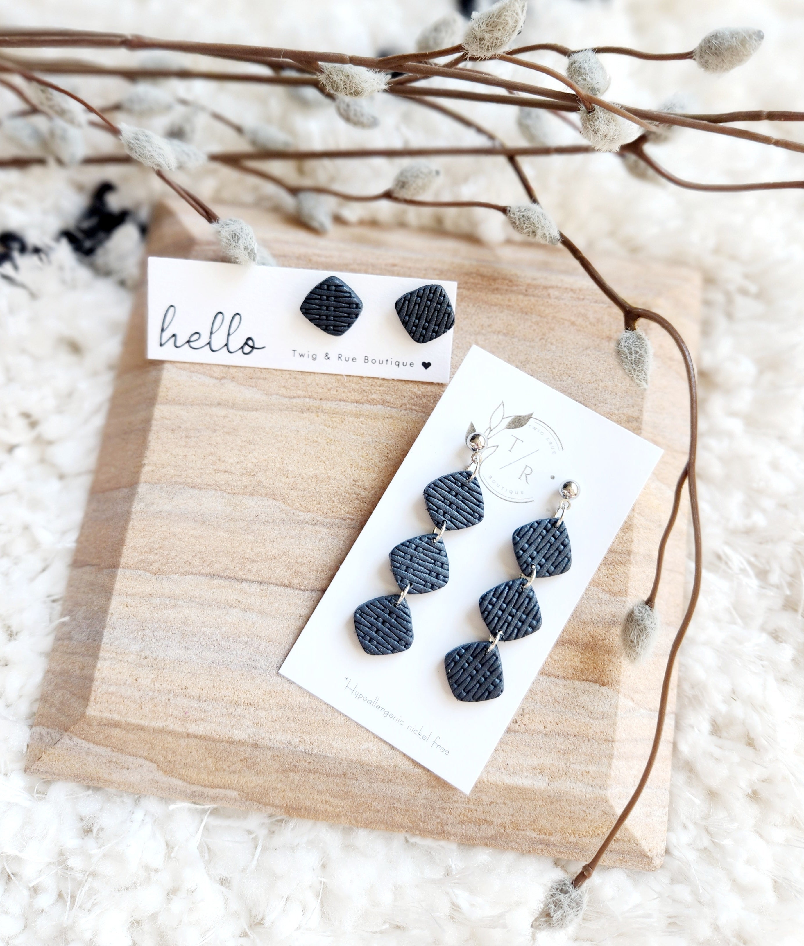 -Handmade in small batches. A deep navy color in a variety of styles: