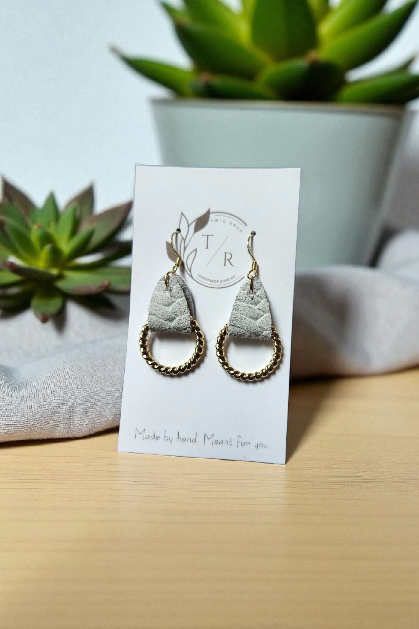 Nora| A genuine leather embossed loop holds a dainty brass hoop into place. Wear these leather hoop earrings with all your outfits. A great go to earring for every day wear
