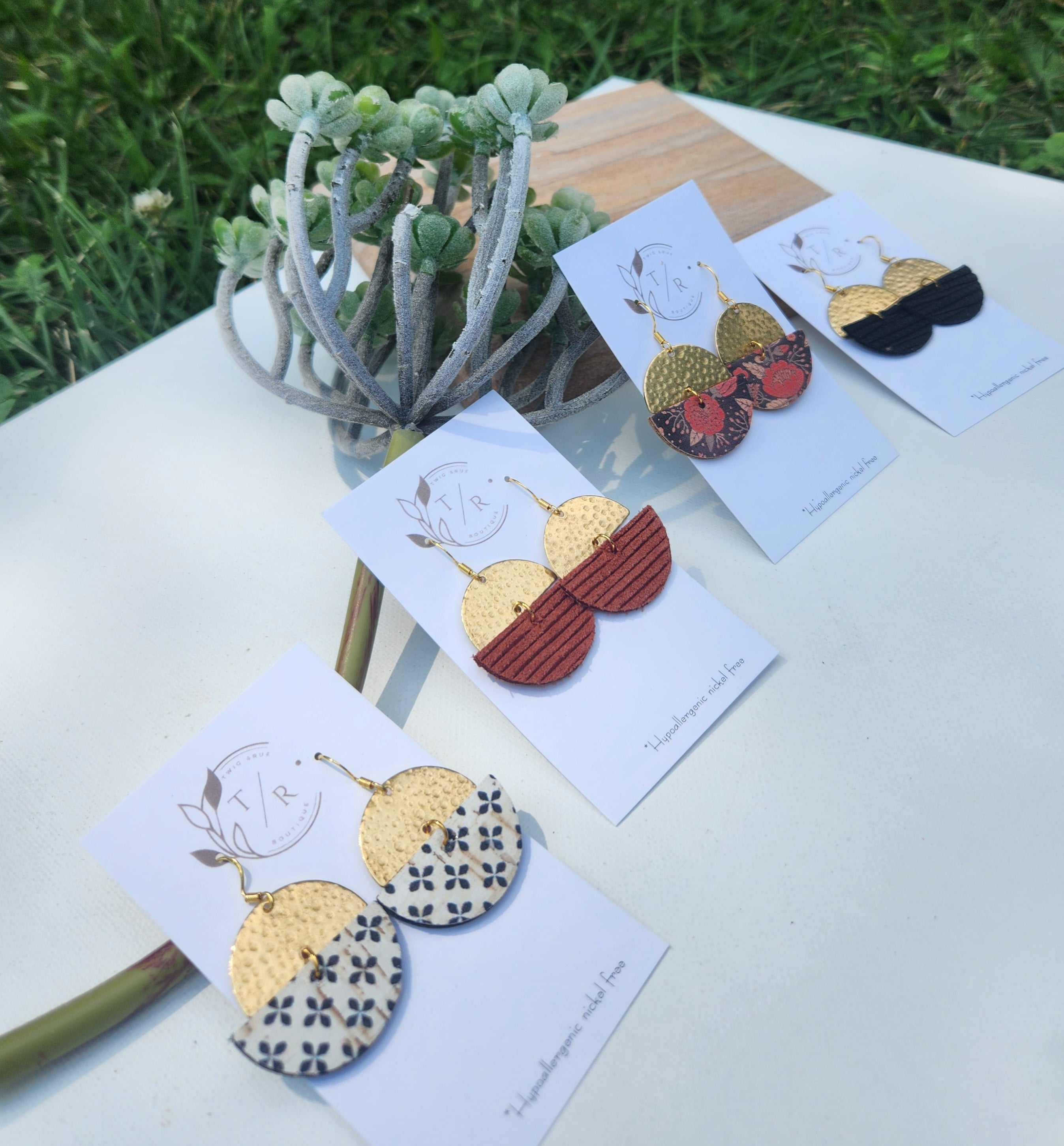 -Perfect choice for everyday wear or pair for any occasion . A pretty hammered brass half circle and genuine leather.