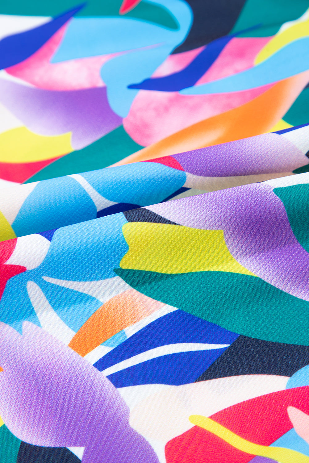 - The intricate abstract print adds a touch of artistic flair to this dress, making it a standout piece for any occasion, whether you're strolling along the beach or attending a garden party.